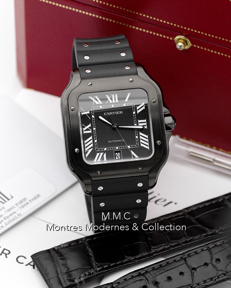 39,8mm in DLC, black dialwith luminescent roman numbers, sapphire glass, screwed backcase, water resistant to 100m
