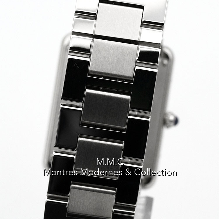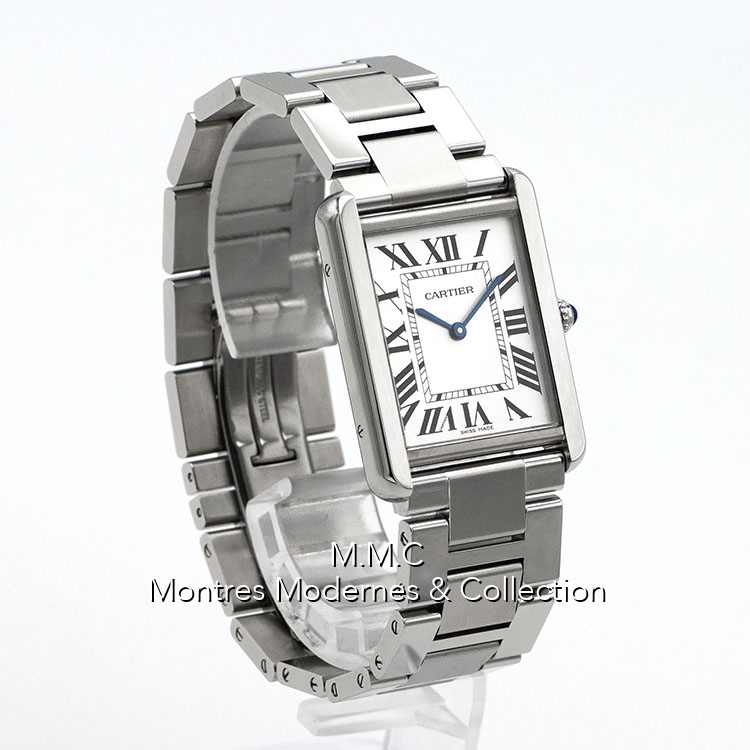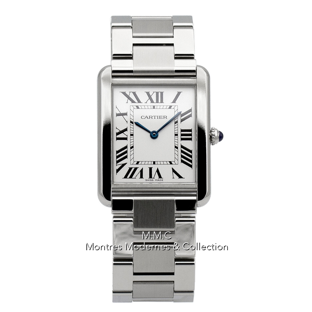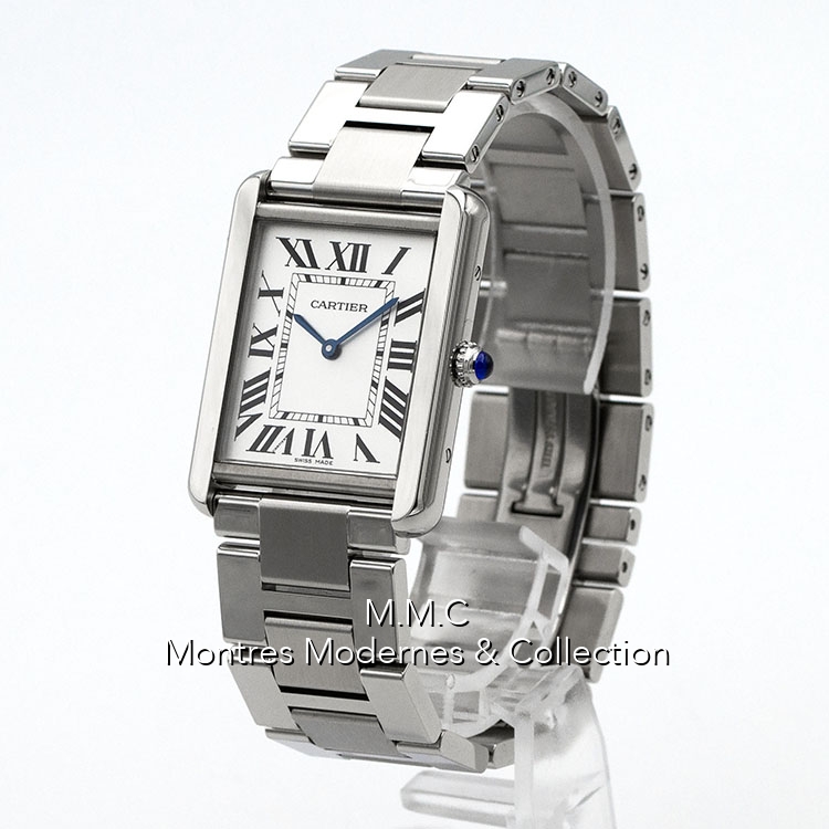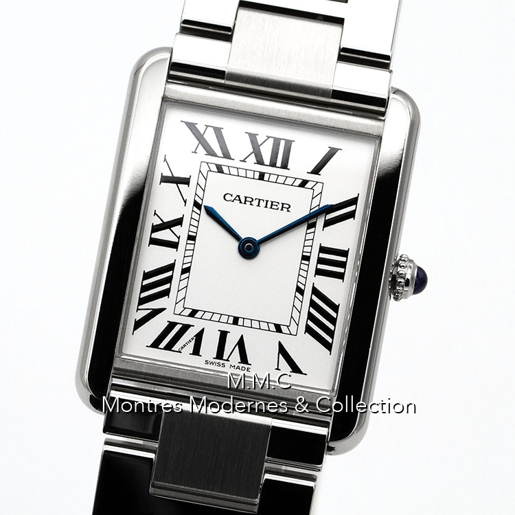 27mm in steel, silver dialwith roman numbers, sapphire glass, screwed backcase, water resistant to 30m