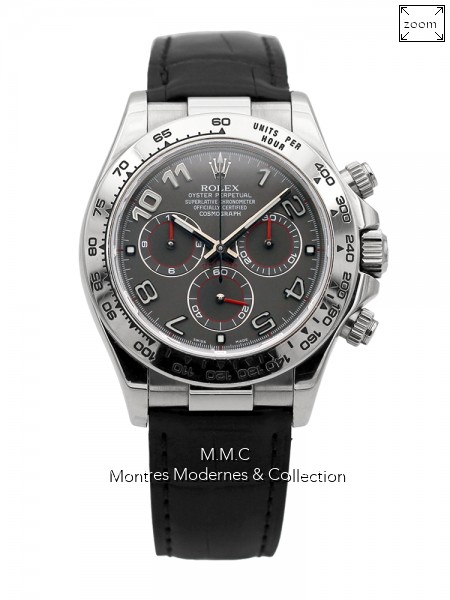 40mm in white gold, gray dialwith luminescent arabic numbers, sapphire glass, screwed backcase, screwed crown, screwed push, water resistant to 100m |
