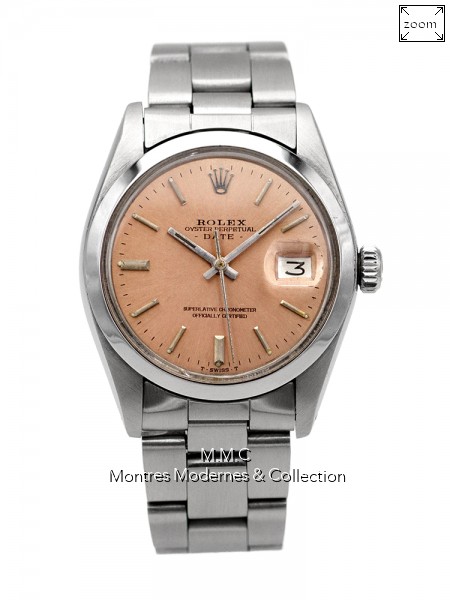 34mm in steel, pink dialwith sticks index, plexiglas glass, screwed backcase, screwed crown, water resistant |