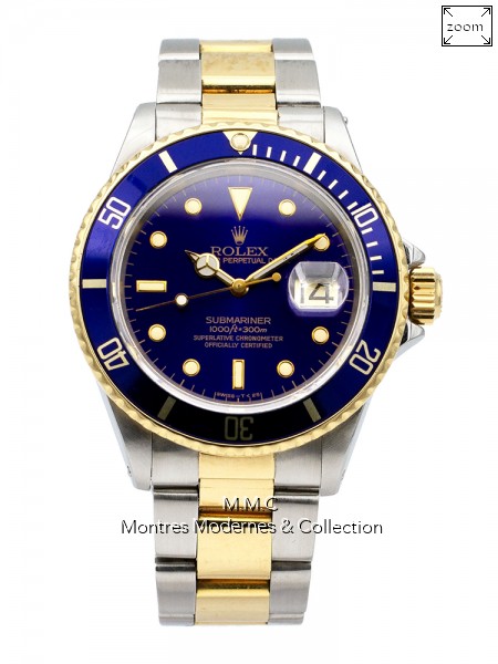 40mm in steel, bezel unidirectional rotating in yellow gold, blue dial, luminescent index and hands, sapphire glass, screwed backcase, screwed crown, water resistant to 300m |
