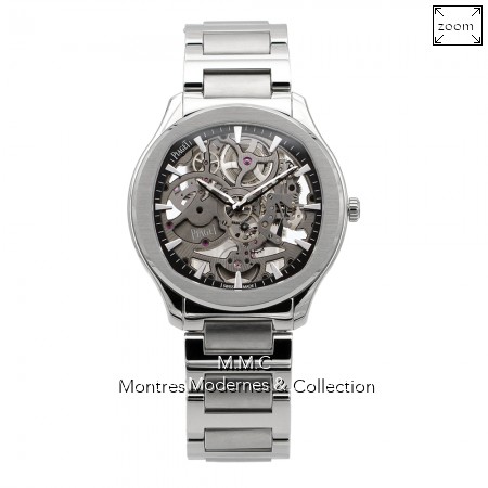 42mm in steel, skeleton dialand sticks index, sapphire glass, screwed backcase transparent, water resistant to 30m |