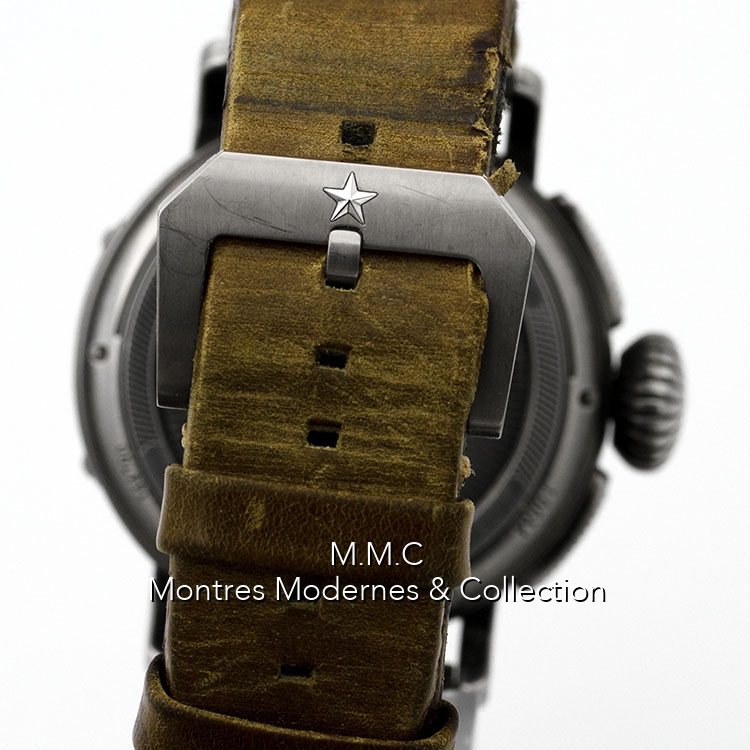 45mm in titanium, gray dialwith luminescent arabic numbers, sapphire glass, screwed backcase with engraving, water resistant to 100m
