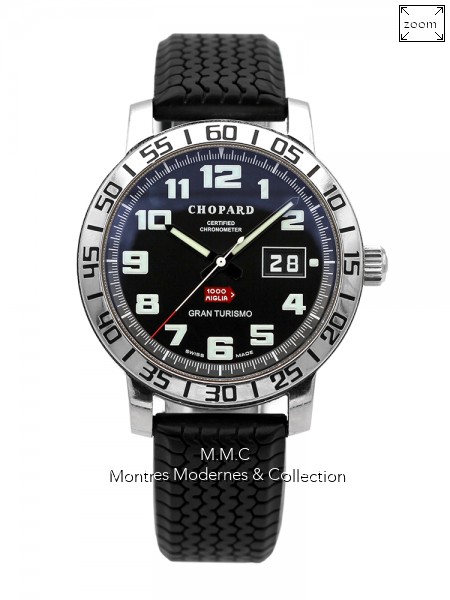 40mm in steel, black dialwith luminescent arabic numbers, sapphire glass, screwed backcase, water resistant to 50m |