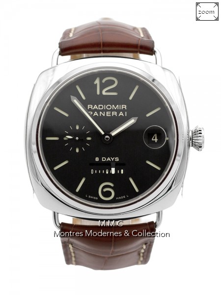 45mm in steel, black dial, luminescent index and hands, sapphire glass, screwed backcase transparent, screwed crown, water resistant to 100m |