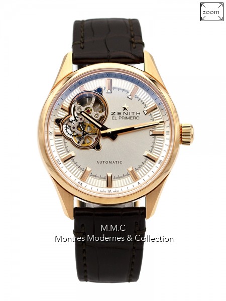 40mm in pink gold, bezel fixed in pink gold, white dialwith sticks index, sapphire glass, screwed backcase transparent, water resistant to 100m |